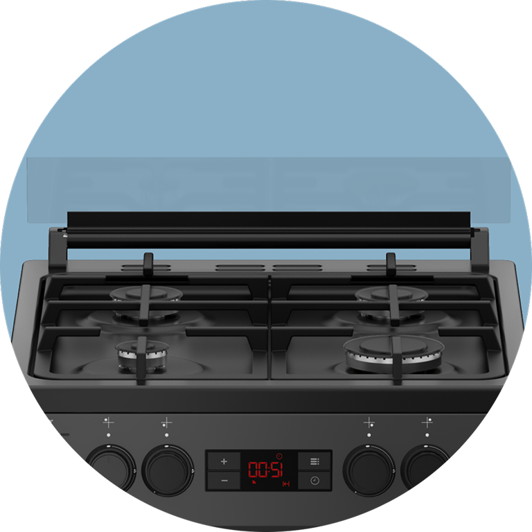 Інтелектуальна система газконтролю — ваш особистий охоронець на кухні. Якщо полум’я раптово згасне через протяг чи збіглу рідину, подача газу миттєво припиниться.