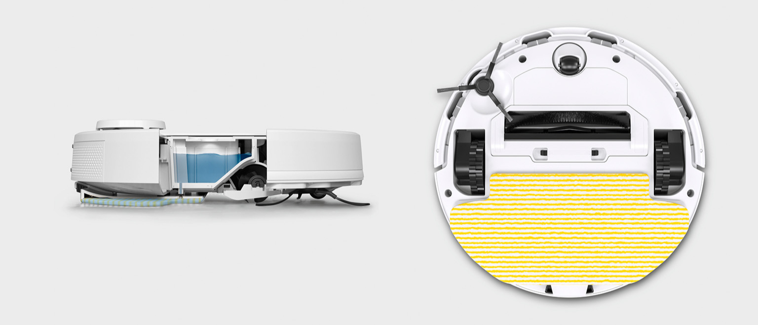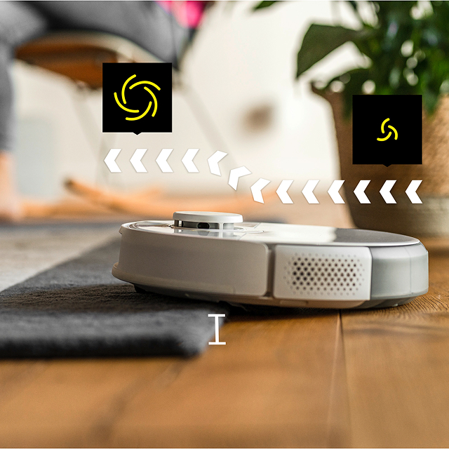 Так, Kärcher RCV 5 легко впорається як з прибиранням твердих поверхонь (ламінат, плитка, паркет), так і з килимами з невисоким ворсом. Його передовий ультразвуковий датчик з легкістю ідентифікує килимові покриття, додаючи їх до інтерактивної карти у вашому смартфоні. Завдяки цьому, при активації вологого прибирання, RCV 5 елегантно оминає всі килими, зберігаючи їх сухими. Для досягнення максимальної чистоти килимових поверхонь, RCV 5 використовує функцію Auto Boost, автоматично оптимізуючи потужність всмоктування.