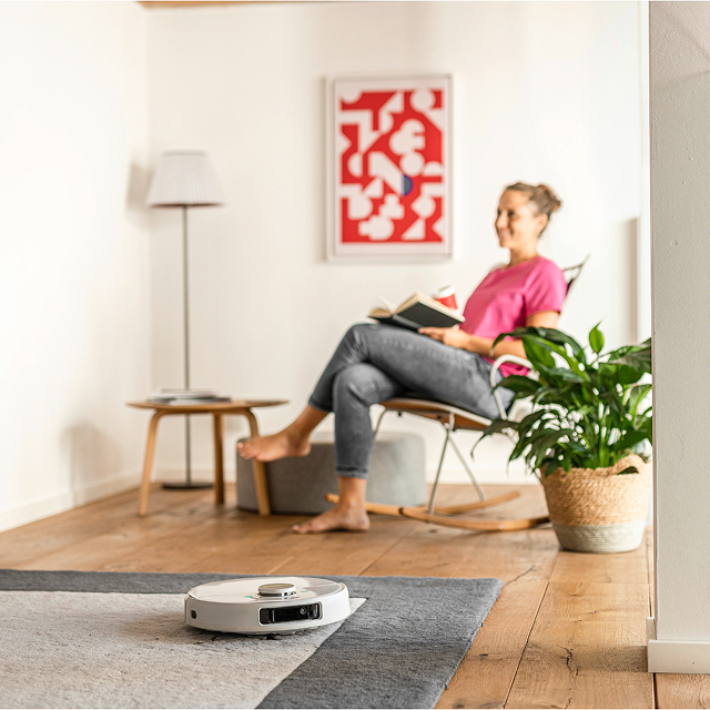 Отримайте бездоганну чистоту завдяки поєднанню в роботі-пилососі штучного інтелекту та інноваційних систем навігації, які забезпечують високоефективне автоматичне сухе та вологе прибирання.