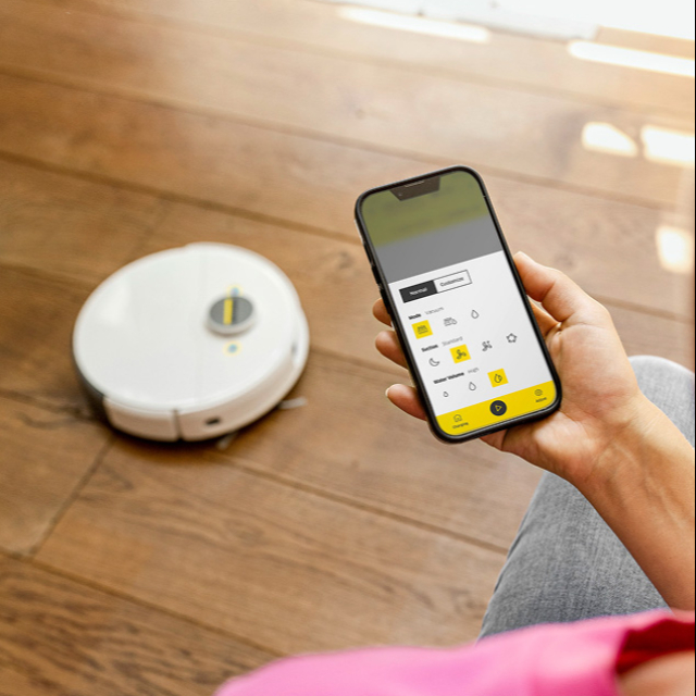 Інтуїтивно зрозумілий мобільний додаток робить керування Kärcher RCV 5 неймовірно простим та зручним. Завдяки WLAN-підключенню, ви отримуєте доступ до широкого спектру функцій: налаштування режимів роботи, дистанційне керування, перегляд динаміки прибирання та сповіщення про стан робота-пилососа. Відчуйте повний контроль над чистотою вашого дому в будь-який час та в будь-якому місці.