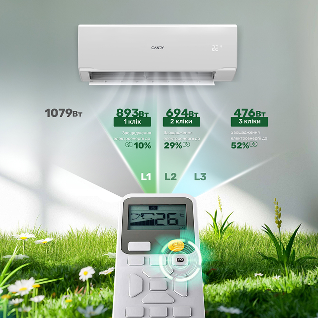 З ECO-режимом кондиціонер працює ефективно, не витрачаючи зайву енергію.