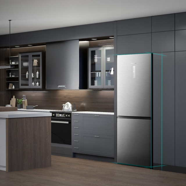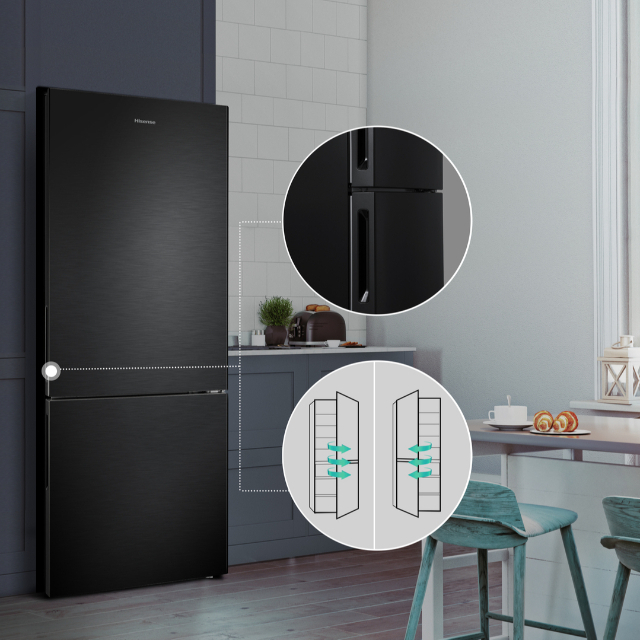 Сучасний дизайн, у якому передбачені дверцята холодильника, які можна перевішувати, чудово доповнить кухню з будь-яким плануванням. Крім того, дверцята можна відчиняти справа або зліва, залежно від того, якою рукою вам зручніше користуватися.