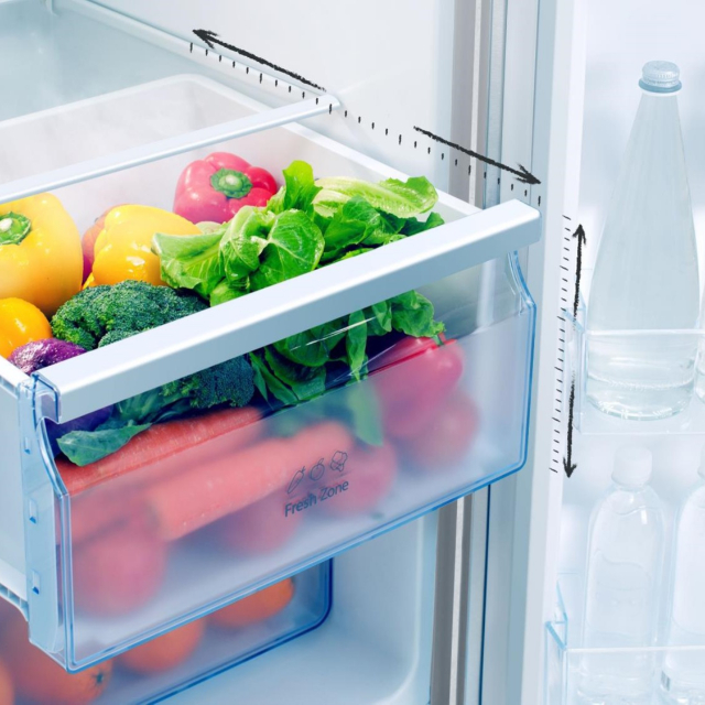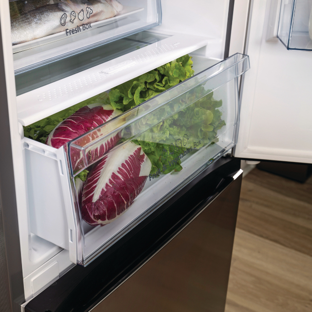 Технологія Moisture Fresh Crisper дає змогу легко змінювати рівень вологості всередині шухляди відповідно до типу продуктів, які ви зберігаєте, без шкоди для свіжості та смаку.
