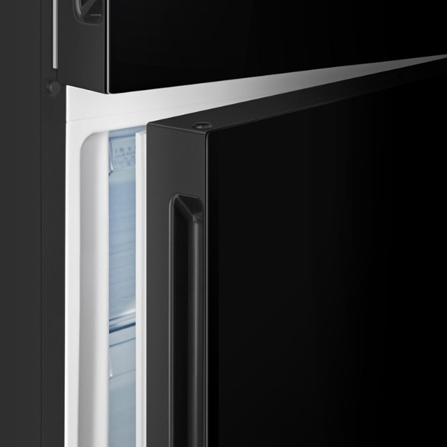 Стильна втоплена металева ручка холодильника забезпечує зручне відчинення дверцят. Матоване покриття допомагає їй вписатися в дизайн будь-якої кухні.
