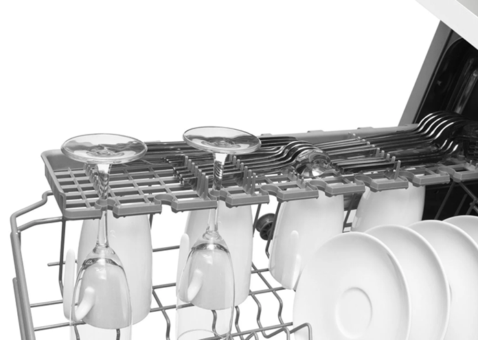 Додатковий кошик-тримач для великих столових приладів у посудомийній машині — це практичне рішення, яке забезпечує безпечне та ефективне миття довгих і гострих предметів, таких як кухонні ножі, виделки, лопатки та черпаки. А також забезпечує надійне розміщення бокалів.