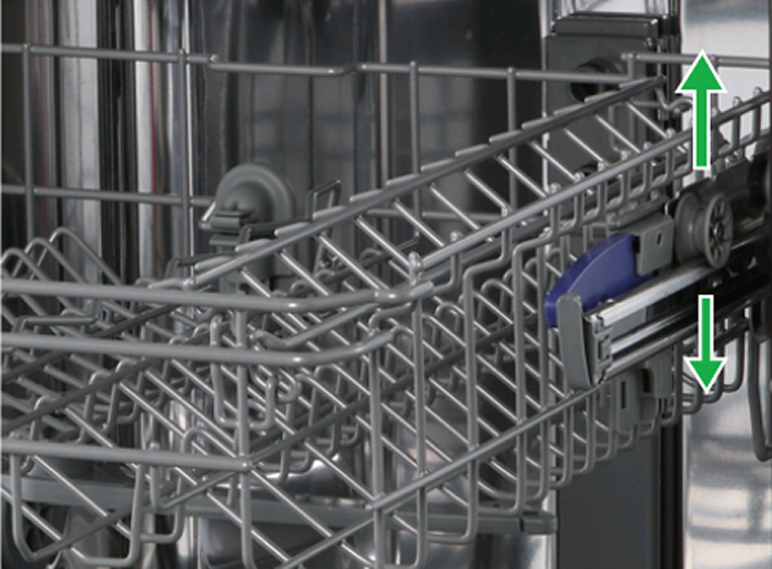 2-ий кошик можна підняти вверх чи опустити до низу в залежності від габаритів посуду.