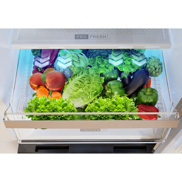 ProFresh – це розумне рішення для збереження свіжості фруктів та овочів. Усередині спеціальної шухляди підтримується ідеальний рівень вологості без конденсації та з мінімальним потоком повітря. Перфорована стеля уповільнює циркуляцію, зменшуючи висихання та зберігаючи природну соковитість. Результат – свіжі фрукти довше, повні смаку, кольору та поживних речовин – саме такі, якими вони мають бути.