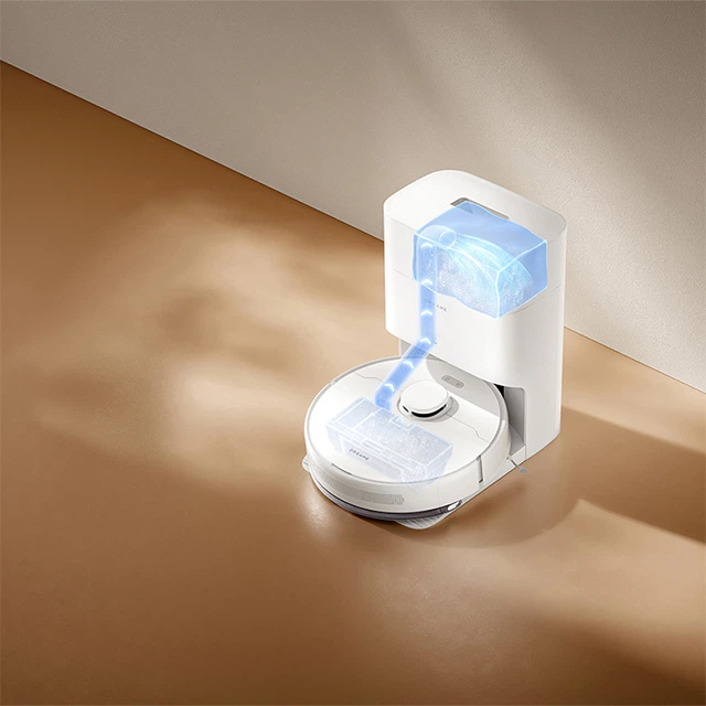 Dreame D10 Plus Gen 2 не тільки прибирає ваш простір, але і піклується про власну очистку. Після кожного сеансу прибирання робот автоматично повертається на зарядну базу, де вивантажує всю зібрану нечистоту у спеціальний мішок об'ємом 4 літри. Це значно спрощує процес догляду за роботом, залишаючи вас безтурботними щодо чистоти вашого простору.