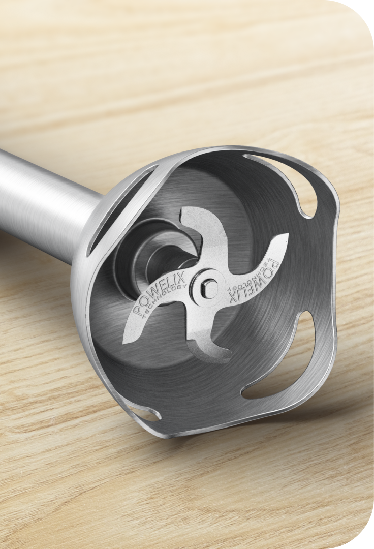 Особлива конструкція занурювальної ніжки зменшує шум та вібрацію осі, а її нижня форма, що захищає інгредієнти від розбризкування, дарує абсолютний комфорт під час використання.