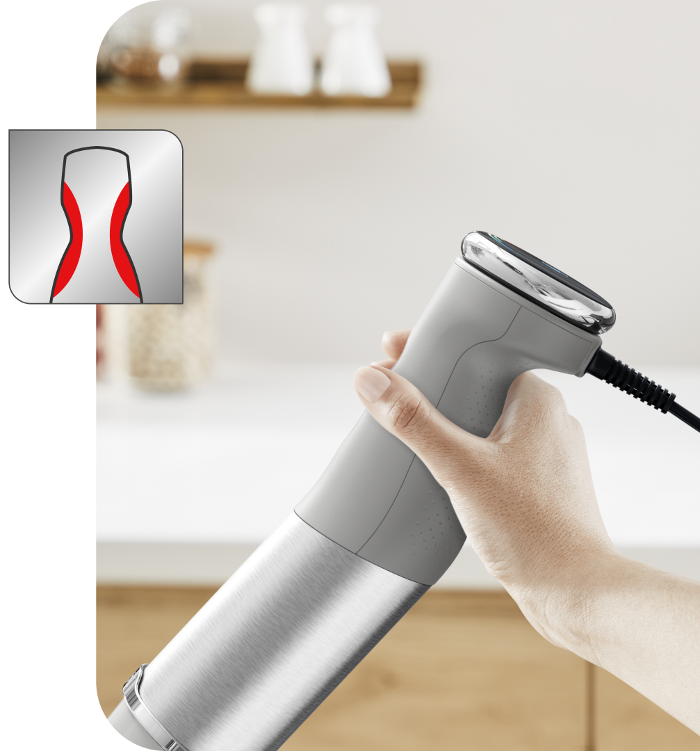 Анатомічна форма ручки в поєднанні з фірмовим покриттям Soft Touch роблять процес приготування не тільки ефективним, а й справді зручним. Єдність двох рішень дарує надійну фіксацію пристрою у руці, запобігаючи ковзанню.