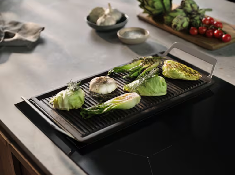 Індукційна варильна поверхня 600 Bridge дозволяє поєднувати дві окремі зони готування для створення однієї великої конфорки. Завдяки автоматичному вирівнюванню налаштувань температури й часу, вона ідеально підходить для багатьох планча-грилів та каструль для запікання.
