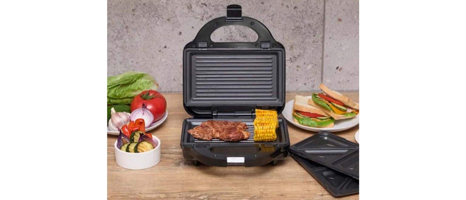 Мрієте про соковиті стейки, запечену курку або ніжні овочі без жодної краплі жиру? З MOP-54 ви зможете приготувати ваші улюблені страви на грилі в лічені хвилини в домашніх умовах. Але це ще не все. Завдяки змінним наборам пластин ви можете пристосувати пристрій до своїх кулінарних вподобань, а також приготувати 4 трикутні бутерброди з вашими улюбленими начинками. Смачного!