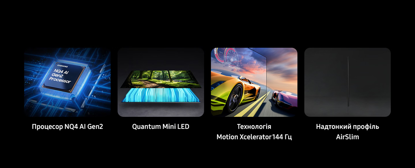 Відчуйте надточну контрастність із Quantum Mini LED завдяки технології Quantum Matrix Core, яка точно контролює всі мінісвітлодіоди. Quantum Mini LED у концентрованих зонах дозволяє насолоджуватися надточною контрастністю та додатковою яскравістю в кожній сцені.
