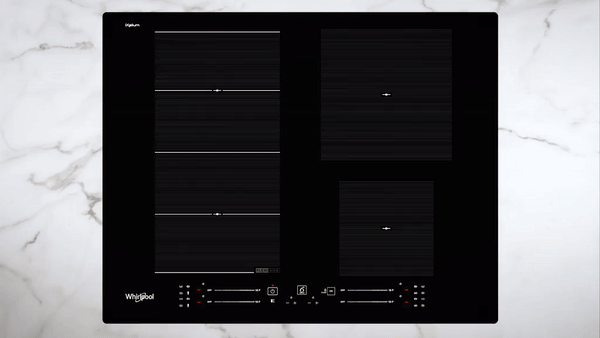 Це збільшує корисну площу робочого простору і створює рівномірний розподіл температури від чотирьох індукторів. Варильні зони можна використовувати окремо або об'єднувати вертикально, щоб каструлі будь-якого розміру було зручно переставляти в будь-яке місце зони flexi