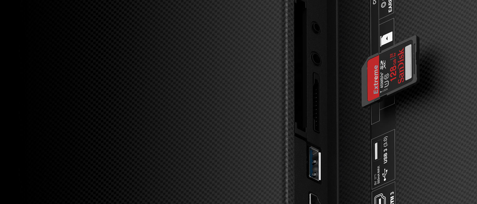 Пристрій для читання SD-картХоча сьогодні смартфон здатний багато на що, але можливо ви вважаєте за краще використовувати для фотографування або зйомки відео цифрову камеру чи 4K-відеокамеру. Тоді за допомогою вбудованого картридера ви зможете вивести цей контент на екран свого великого телевізора в роздільній здатності 4K або Full HD. Так ви не тільки зможете роздивитись кожну деталь зображення самі, а й продемонструвати ваші відео та фото іншим.