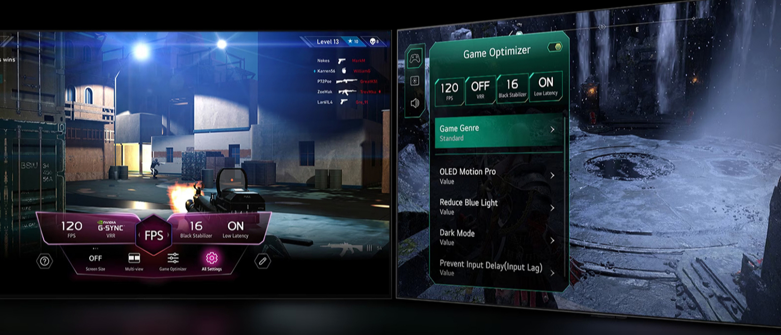 ** QNED99, QNED90, QNED89, QNED85 і QNED80 оснащено GeForce NOW, "Інформаційна панель гри" й "Оптимізатор гри", ALLM, eARC і HGiG.