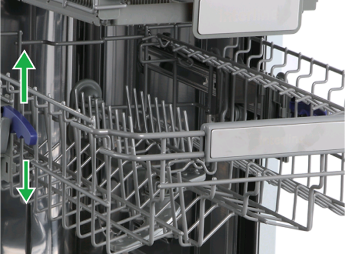 2-ий кошик можна підняти вверх чи опустити до низу в залежності від габаритів посуду.