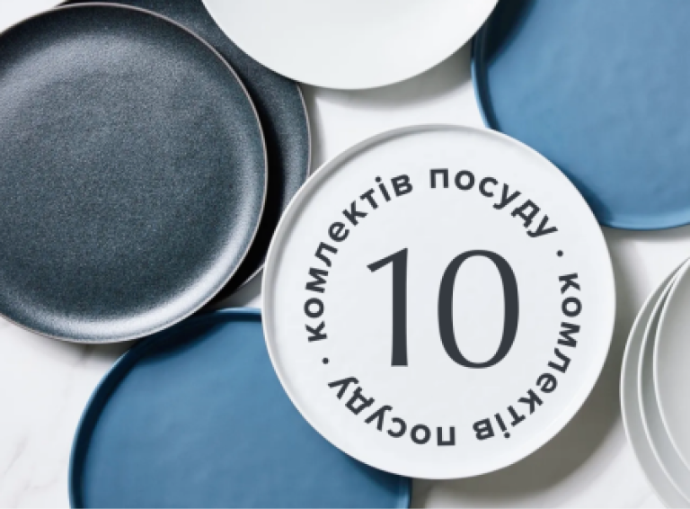 10 комплектів посуду.