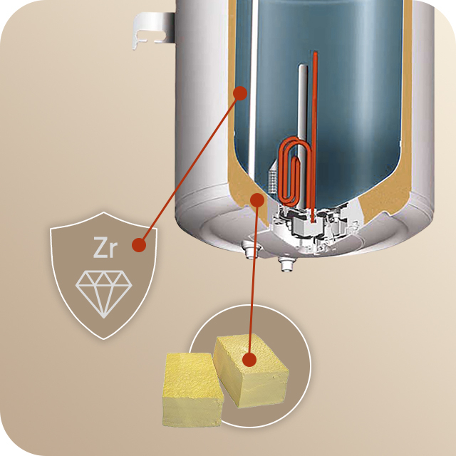 Вміст цирконію в емалі надає високу міцність, еластичність та хімічну стійкість покриття, гарантуючи надійний захист бака від протікання навіть за високої температури та тиску.