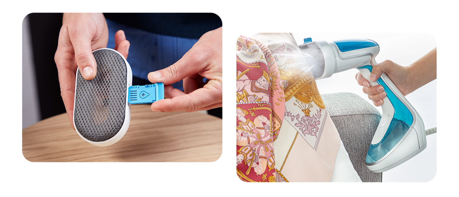 Пара не зіпсує навіть найделікатнішу тканину. Ви також можете продезінфікувати одяг та домашній текстиль. Відпарювач готовий до роботи за 25 секунд і не потребує прасувальної дошки. Ідеально підходить, щоб освіжити одяг перед виходом.