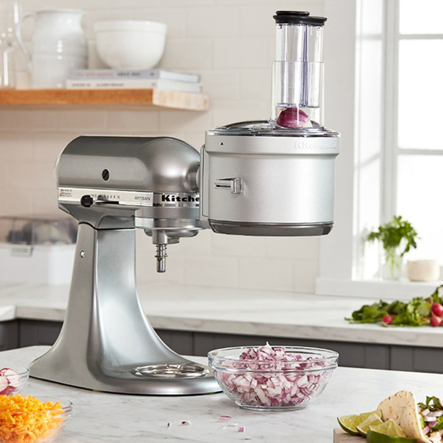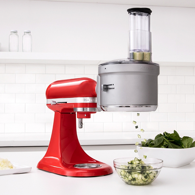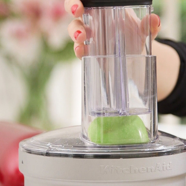 Підключіть насадку для подрібнення до універсального роз'єму вашого міксера KitchenAid. Просто відкрийте кришку роз'єму, встановіть насадку — і готуйте корисні страви, які сподобаються навіть найвибагливішим. До того ж, ви легко створите елегантні, екзотичні і яскраві страви, щоб здивувати гостей.