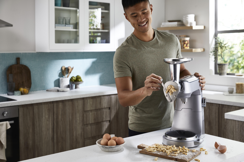 Диск для макаронів рігаті входить до комплекту насадки для формування пасти, але ви також можете доукомплектувати її дисками для біґолі, букатіні, касаречче, конкільєтте, фузіллі, лінгвіне, макарони ліскі, орек’єтте, папарделле, тальятеле або спагетті квадро.