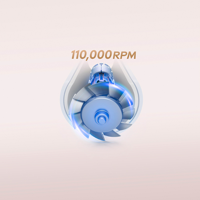 Новітній двигун розвиває потужність 1600 Вт — все завдяки оборотам до 110 000 разів на хвилину. Це скорочує час сушки до мінімуму, тож ви можете робити експрес-стайлінг чи просто швидко сушити пасма, коли поспішаєте.