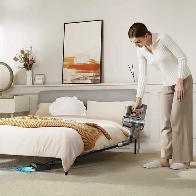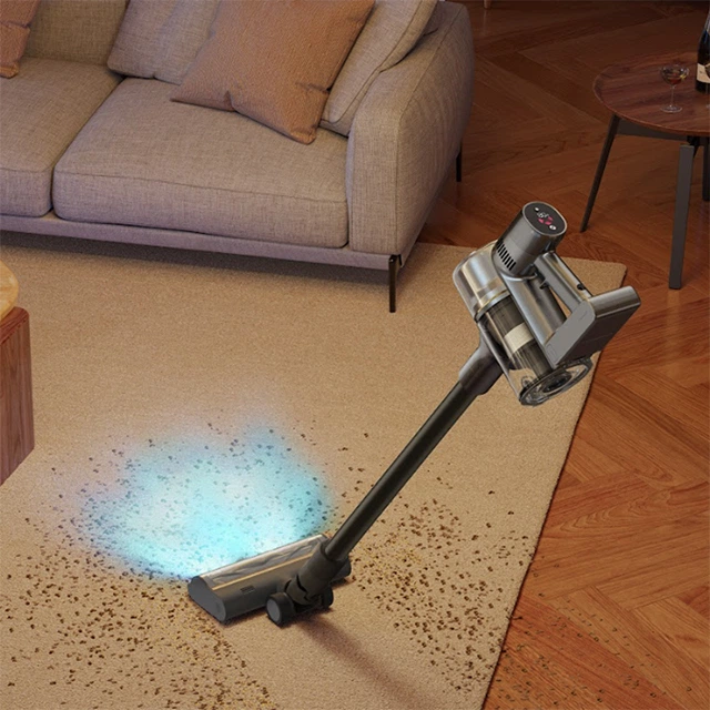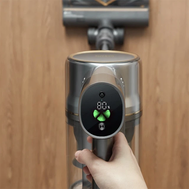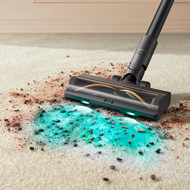 Розумний LED-дисплей відображає всю важливу інформацію від рівня заряду акумулятора до ступеня забрудненості. Інтелектуальний датчик забрудненості автоматично визначає рівень пилу та бруду, підбираючи оптимальний режим роботи для ефективного та швидкого збирання. Потужне LED-підсвічування щітки висвітлює темні кутки та простір під меблями, дозволяючи вам побачити та прибрати навіть найдрібніші частинки пилу.
