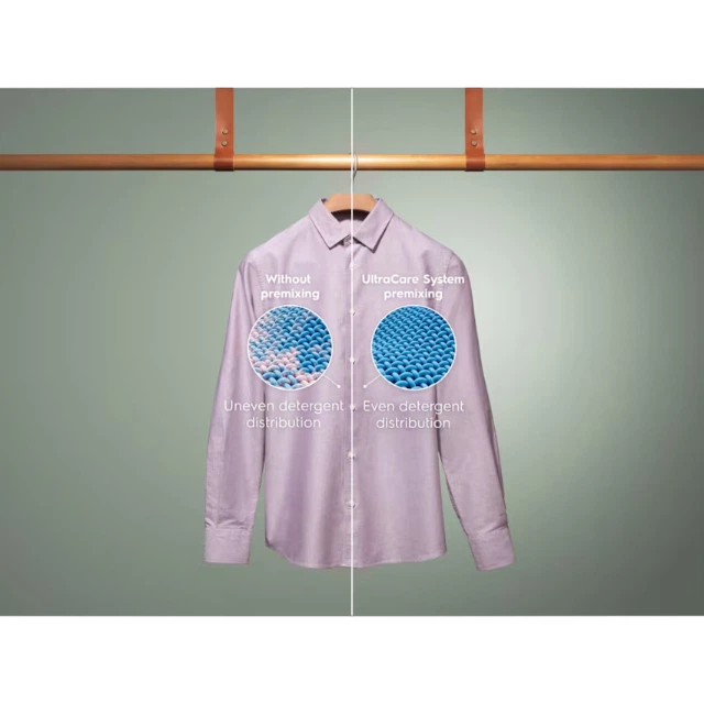 Насолоджуйтеся гарним одягом довше з нашою системою UltraCare. Мийний засіб і пом'якшувач попередньо змішуються у воді, перш ніж потрапити у барабан, рівномірно розподіляючись по білизні. Завдяки цьому вони швидко починають діяти, в свою чергу, захищаючи волокна тканин.