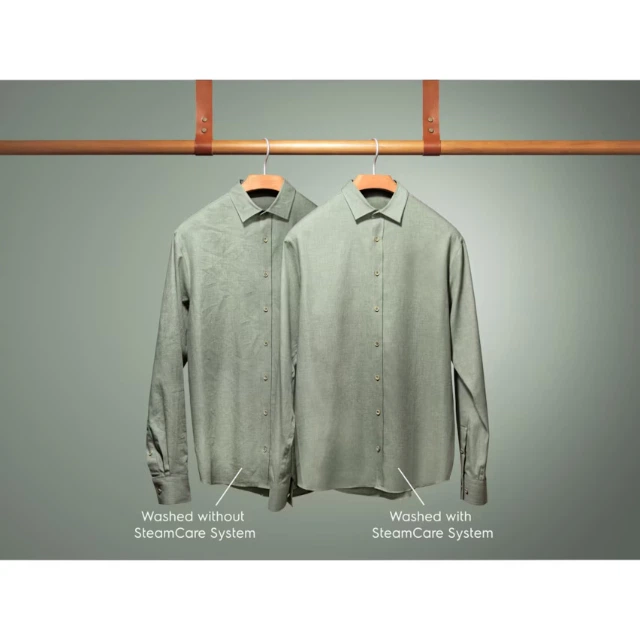 Завдяки нашій системі SteamCare одяг має значно менше складок. Завдяки додаванню пари наприкінці прання волокна розслаблюються і складки зменшуються на третину. Одяг довше виглядає краще без додаткового нагрівання під час традиційного прасування.