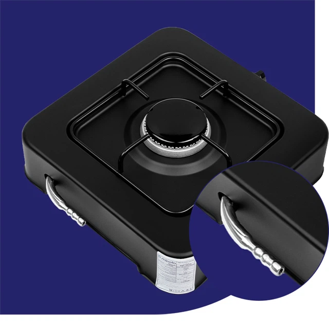 Завдяки компактності та малій вазі цю плиту можна легко переносити в руках. Вона підключається до будь-якого балона зі зрідженим газом.