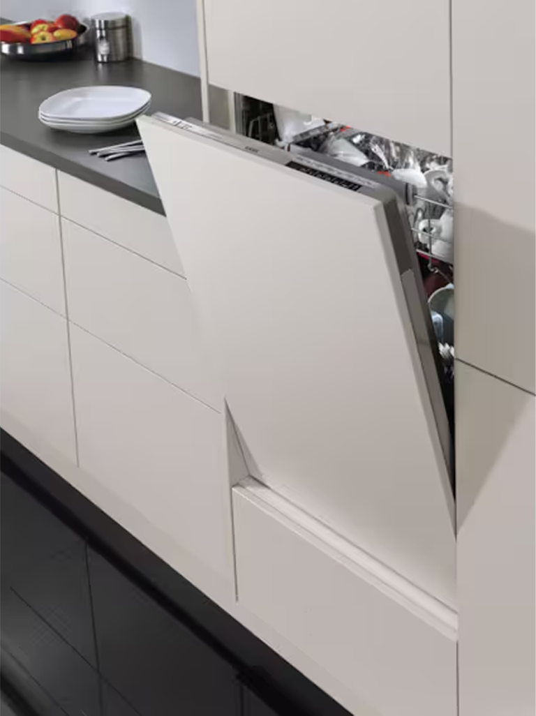 Система PerfectFit Sliding Hinge забезпечує непомітне встановлення посудомийної машини. Вона враховує всі розміри висоти машини, що встановлюється в нішу, та усуває необхідність вирізання плінтусу. Підходить для будь-якої сучасної кухні.