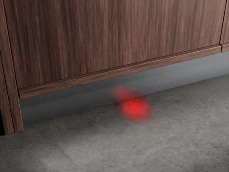 Ця інтегрована посудомийна машина має систему відображення стану роботи. Технологія Beam-on-floor проектує червоне світло на підлогу, поки цикл триває. А коли готова до розвантаження, перемикає на зелене. Просто і ефективно.