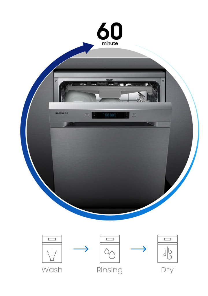 Заощаджуйте час завдяки 60-хвилинному циклу миття та сушіння