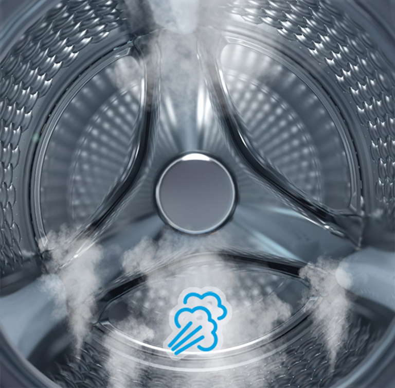 Парове очищення забезпечує кращий захист від мікробів і бактерій порівняно зі звичайним циклом прання. Парове прання має більшу ефективність та працює при набагато вищих температурах довше, ніж у більшості інших пральних машин. Пара допомагає послабити нитки та волокна в тканині, видаляє складки без прямої дії високих температур.