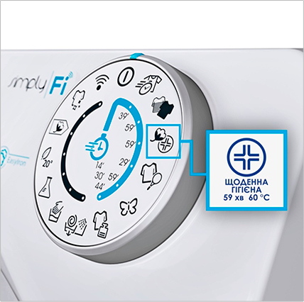 Виберіть програму швидкого прання Daily Hygiene («Щоденна гігієна») для дезінфекції та глибокого очищення одягу. Цикл прання триває лише 59 хвилин за постійної температури 60 °C. Такий режим дозволить надійно очистити одяг усіх членів вашої родини від алергенів, мікробів, бактерій та інших чинників, що негативно впливають на здоров’я за короткий проміжок часу.