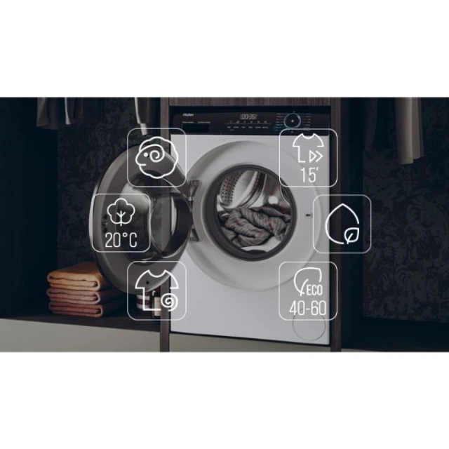 Haier I-Pro 3 пропонує повний набір циклів прання, які обов'язково задовольнять усі ваші потреби. Серед доступних програм: швидка програма тривалістю всього 15 хвилин, гігієнічна програма Allergy-Care, режим Eco 40-60, прання при 90⁰C, бавовна 20⁰C, програми для бавовни, вовни та синтетичних тканин, а також можливість освіження одягу.