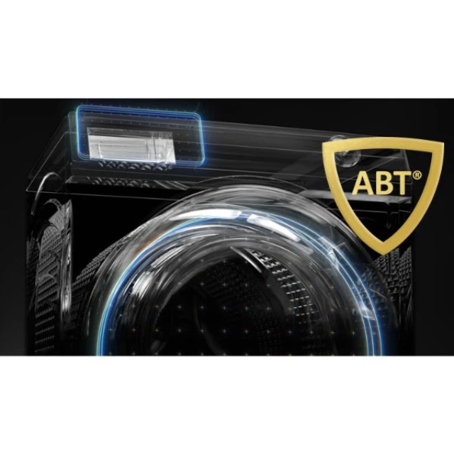 Інноваційне рішення, яке захищає найбільш чутливі зони пральної машини, забезпечуючи найвищий рівень гігієни під час циклу прання. Антибактеріальна технологія ABT захищає від цвілі та бактерій, видаляючи до 99,9% мікробів, які розмножуються в ящику для пральних засобів та ущільнювачі барабана.