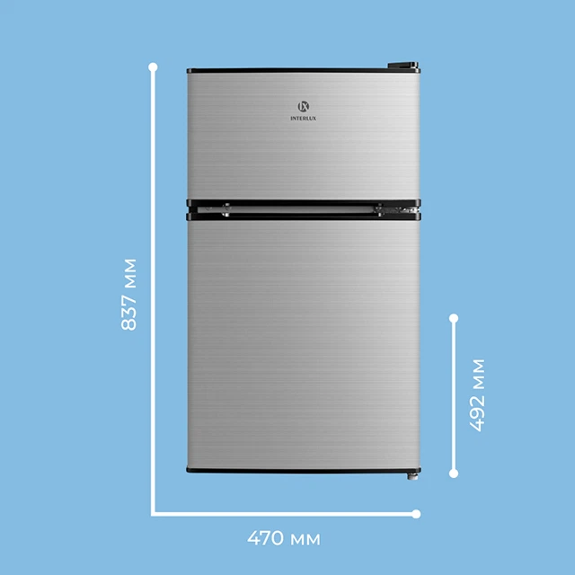 Холодильник має зручні розміри (Ш × Г × В): 470 × 492 × 837, вага — лише 21,7 кг. Завдяки компактності він ідеально вписується навіть у приміщення з обмеженим простором, забезпечуючи комфортне користування без зайвих клопотів.
