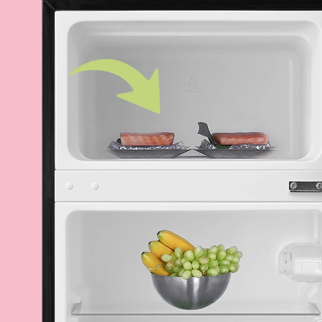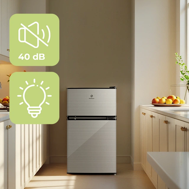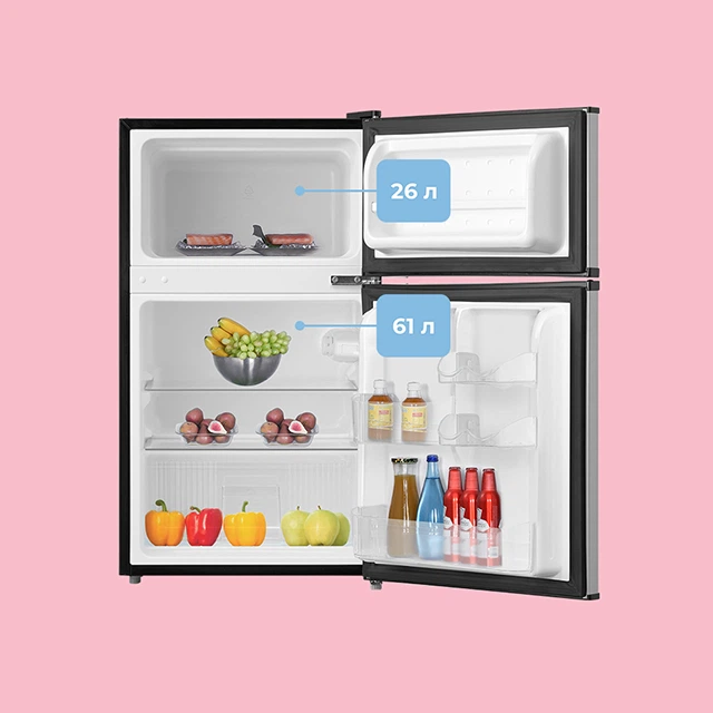 Вдосконалений холодильник із корисним об’ємом у 87 літрів, з яких 61 літр призначений для холодильної камери та 26 літрів для морозильної камери.