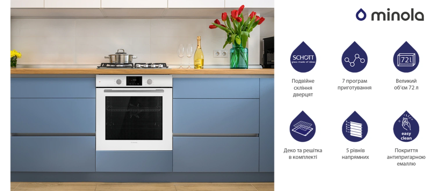 Електрична духова шафа Minola EOD 675 WH — втілення сучасних технологій