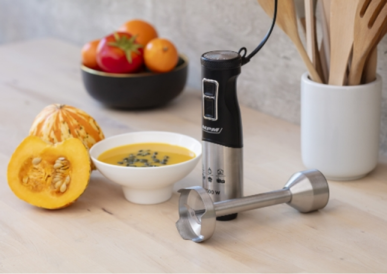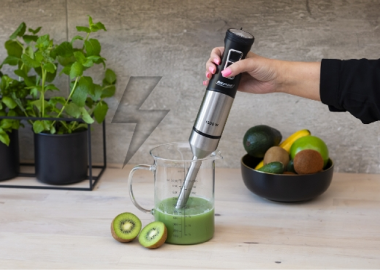 Простий у використанні ручний блендер MBL-33M може стати вашим незамінним помічником на кухні. Це прилад, який може значно спростити повсякденне приготування їжі. Ви можете легко помістити його в ящик шухляди або повісити на настінний гачок. Він ідеально підходить для багатьох кулінарних завдань - змішати інгредієнти для поживного смузі, приготувати оксамитовий овочевий крем-суп або подрібнити цибулю чи часник. Продуктивність блендера також оцінять ті, хто готує їжу для маленьких дітей, людей похилого віку та тих, кому потрібна подрібнена їжа. Потужність блендера становить до 1500 Вт, що гарантує швидкий і точний результат.