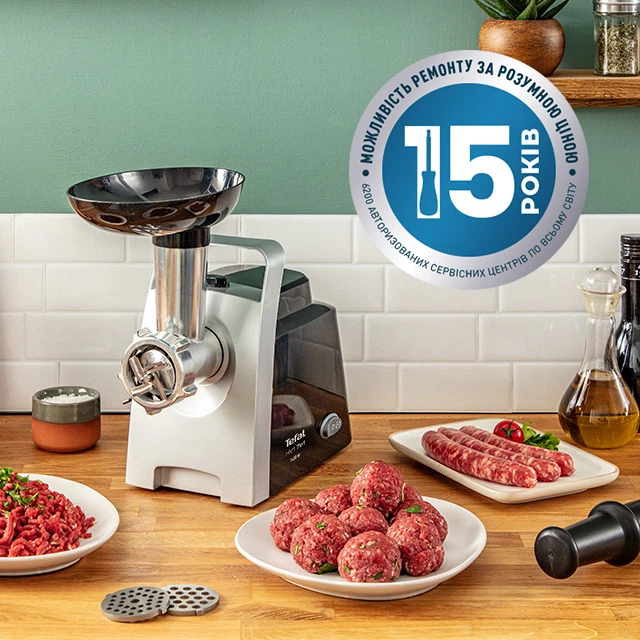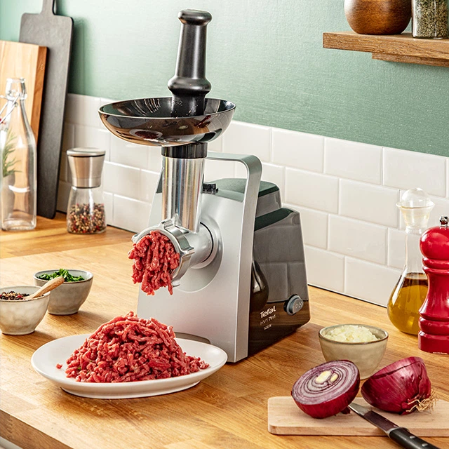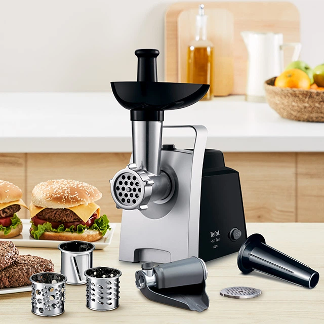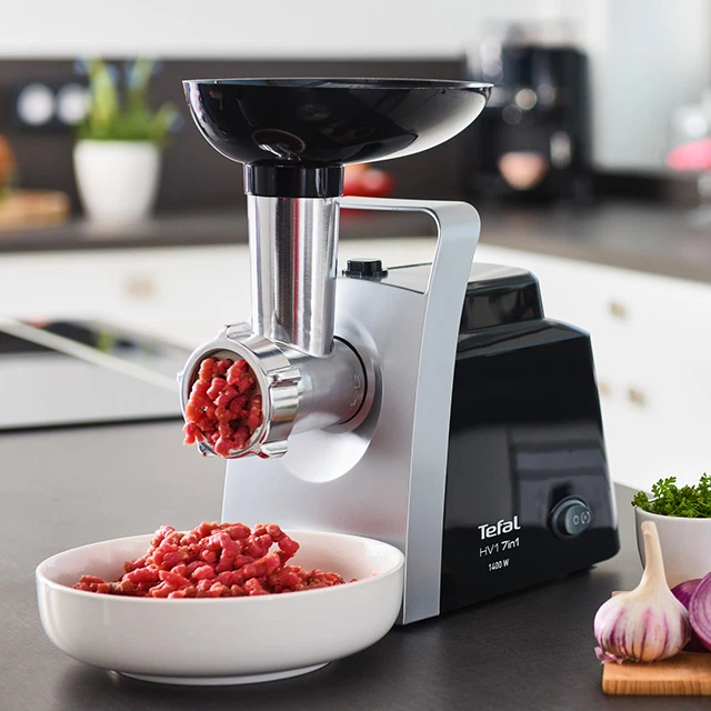М'ясорубка Tefal HV 7в1 — ідеальний помічник на кухні, якщо ви хочете приготувати будь-який рецепт страв на основі м'ясного фаршу, а також для салатів, гарнірів або томатного соку.