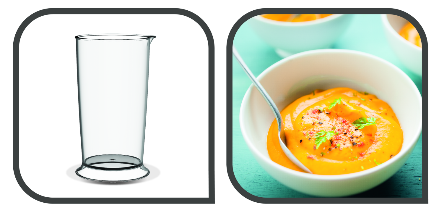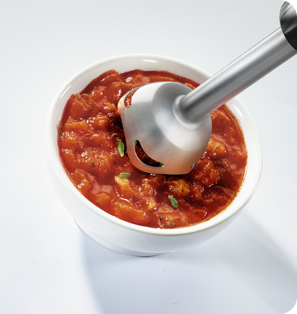 Міцні гострі леза з нержавійної сталі швидко перетворюють будь-які інгредієнти на ідеальне пюре, густі соуси чи навіть шоколадний мус. Просто оберіть страву.
