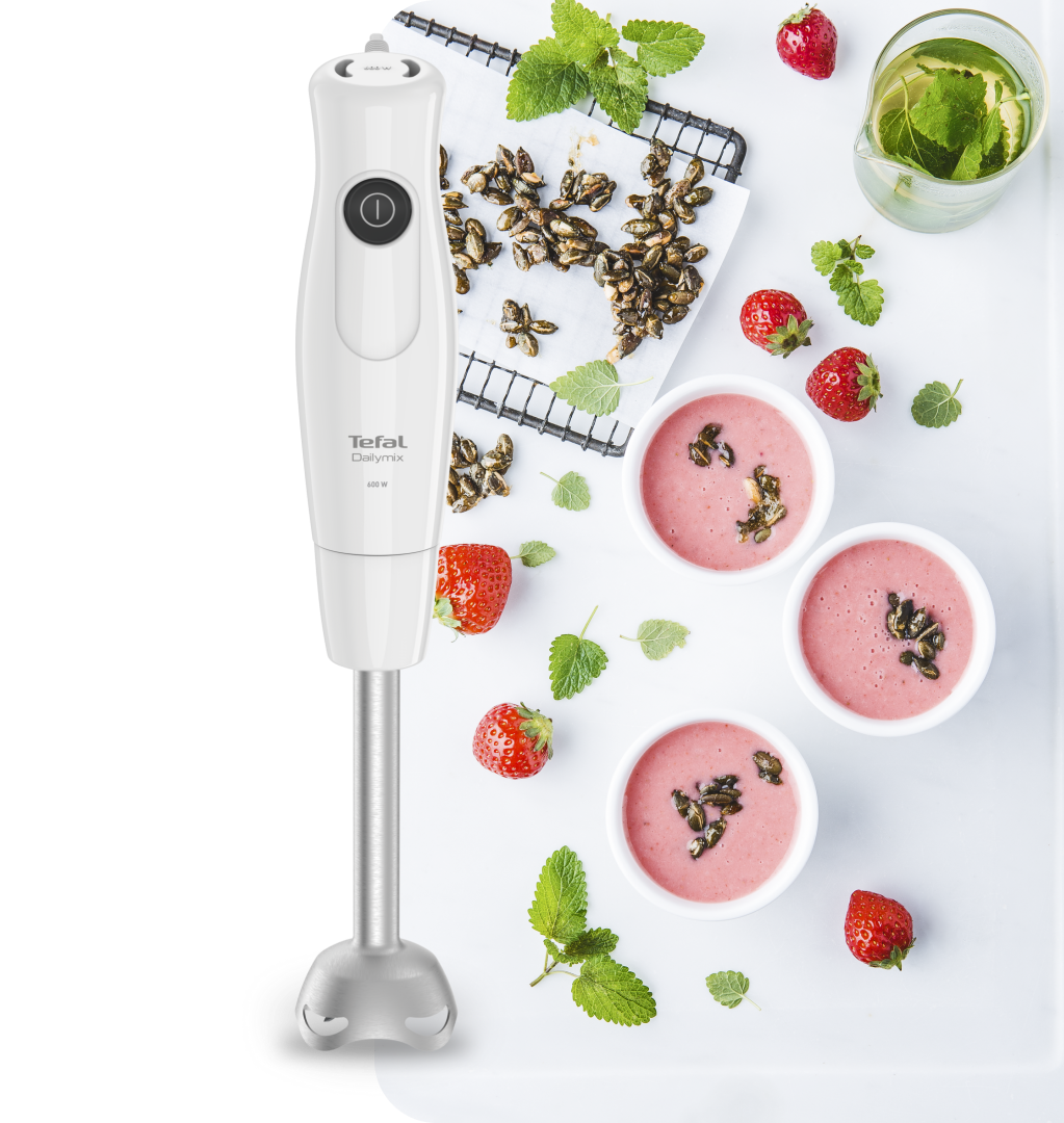 Завдяки високоякісним гострим лезам і надійному мотору потужністю 600 Вт ручний блендер Tefal Dailymix HB533138 швидко й рівномірно змішає будь-які інгредієнти та створить ідеальну консистенцію ваших страв.