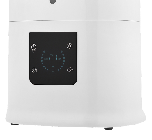 Зволожувач оснащено інформативним LED-дисплеєм. Передбачено сенсорну панель і пульт дистанційного керування для зручного налаштування. Також є таймер (1–8 год), завдяки якому можна програмувати тривалість роботи пристрою.