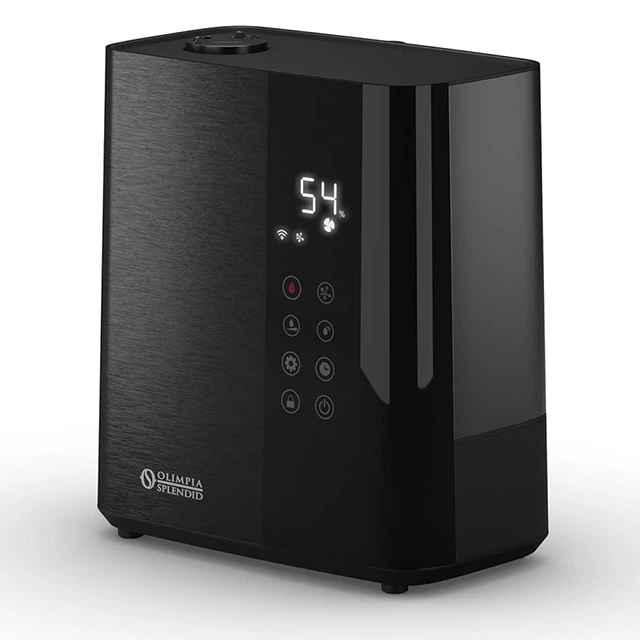 Olimpia Splendid LIMPIA HERO ідеально підходить для зволоження повітря протягом тривалого часу завдяки великому 5-літровому резервуару. Також він оснащений функцією ароматерапії, яка поширює приміщенням неймовірні аромати для покращення самопочуття. Зволожувачем можна керувати зі зручної сенсорної панелі або зі смартфона завдяки вбудованому Wi-Fi і застосунку OS HOME. Вас потішать і додаткові функції: від плазмової іонізації, яка зменшує кількість забруднюючих частинок у повітрі, до теплого розпилення для дезінфекції.
