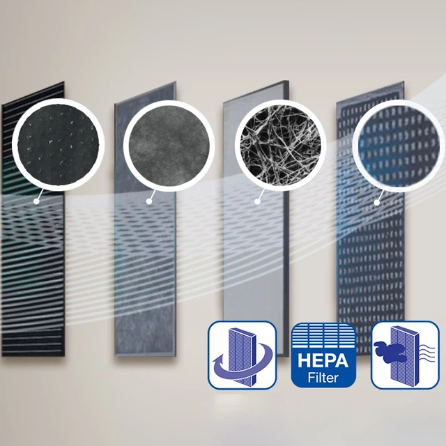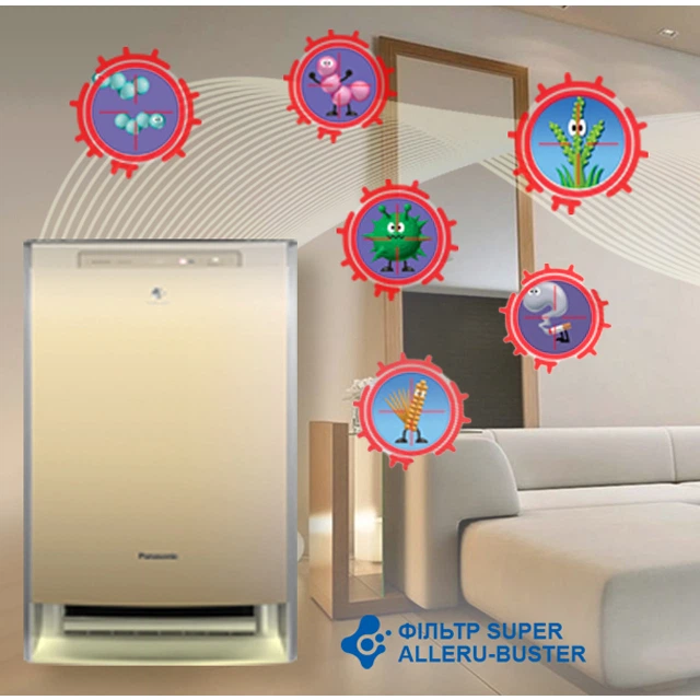 Очищувач та зволожувач Panasonic F-VXR50R-N усуває різні види забруднень: великі та дрібні частинки пилу, алергени, молекули неприємного запаху та інші домішки.