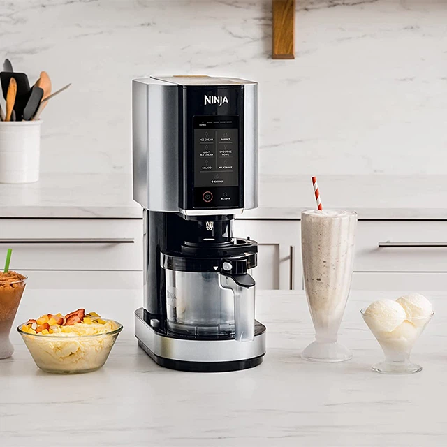 Втілюйте у життя будь-які кулінарні шедеври за допомогою морозивниці Ninja. Компактний корпус стильного графітового кольору доповнить інтер’єр будь-якої кухні. Гаджет оснащений інтуїтивною панеллю з 7 програмами десертів. Обирайте будь-який: італійське джелато, легке морозиво, класичне, смузі-боул, сорбет, молочний коктейль і функція перемішування для топінгів. Вам не обов’язково застосовувати лише класичне молоко, спробуйте безлактозне або веганське.