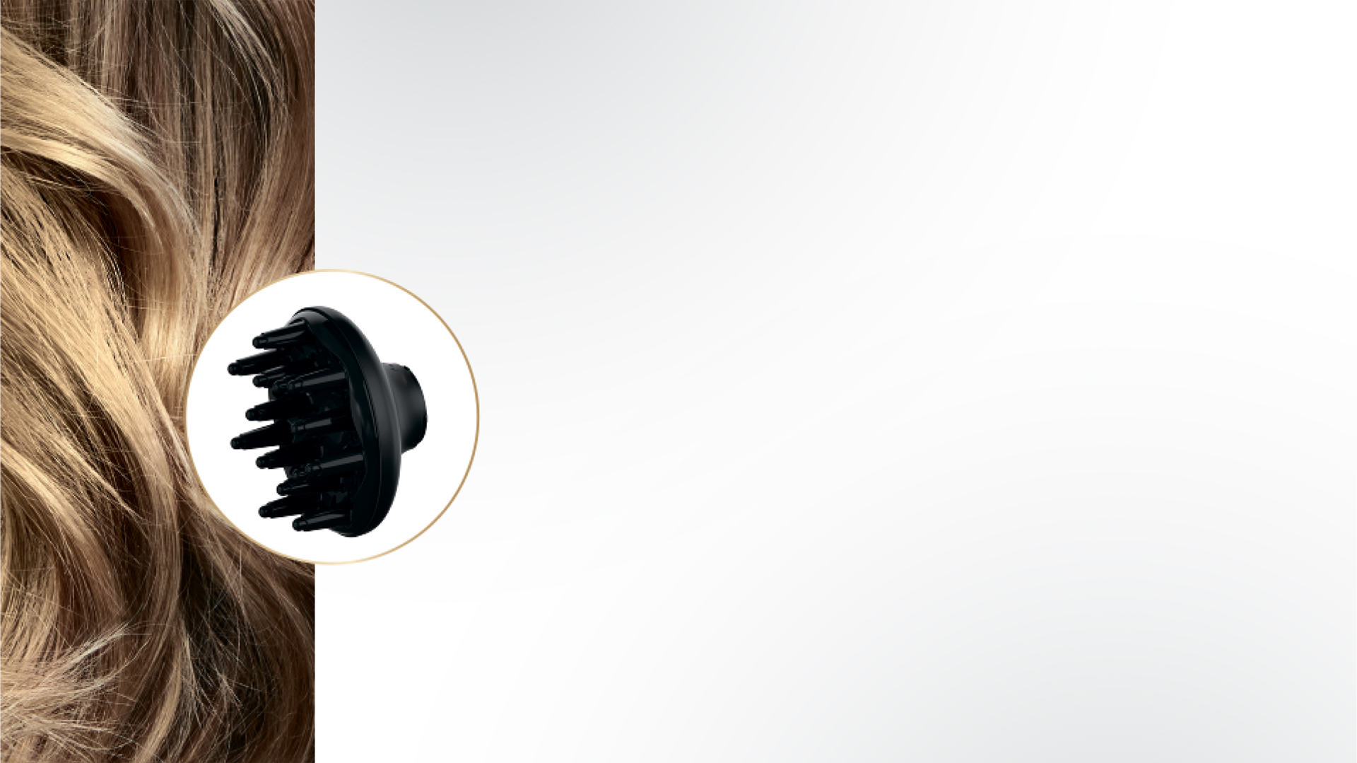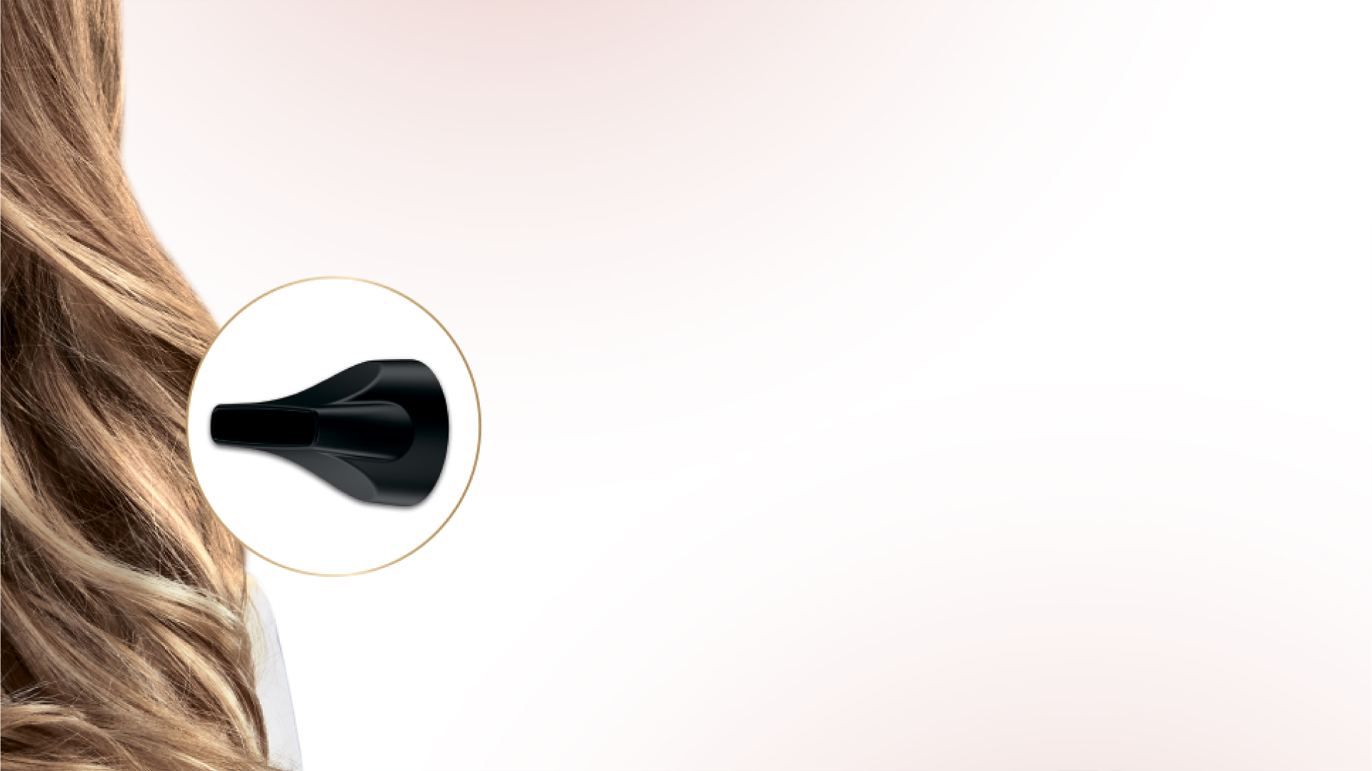 Насадка забезпечує рівномірний розподіл повітря, запобігаючи пересушуванню та мінімізуючи вплив тепла на волосся.